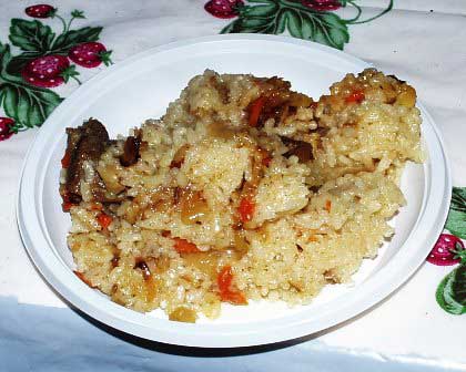 中央アジア風ピラフだと言って出されたもの。気のせいか使われている米は短粒種に見え、粘りけもそれなりにあったように思えた。しかし、我々の口にはよくあって美味しかった。