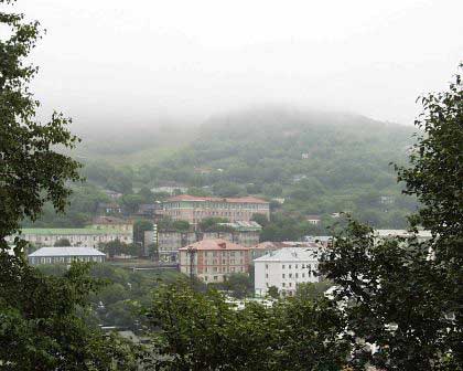 ペトロパヴロフスク・カムチャツキー市内にはいくつもの丘があるために、非常に坂道の多い街という印象を受ける。 (2000年8月撮影)