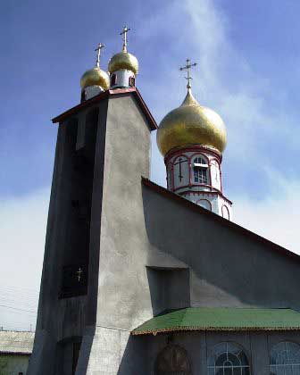 市の中心部から離れたところで見かけたロシア正教の教会。名前も聖ペテロ・パヴロ教会というのだそうだから、この町ではいちばん由緒ある教会かもしれない。 (2000年8月撮影)