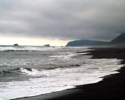 太平洋に面した砂浜。海岸にいたら突然軍の装甲兵員輸送車が2台現れて驚かされた。軍の基地か訓練場が近くにあるのかもしれない。 (2000年8月撮影)