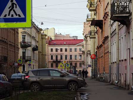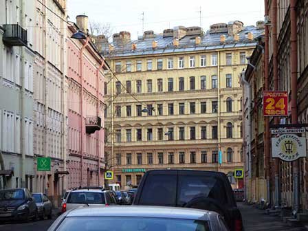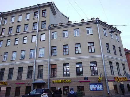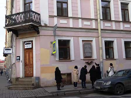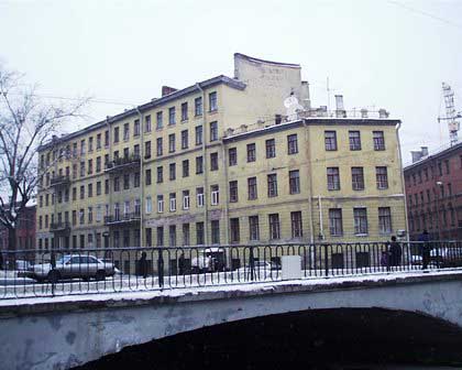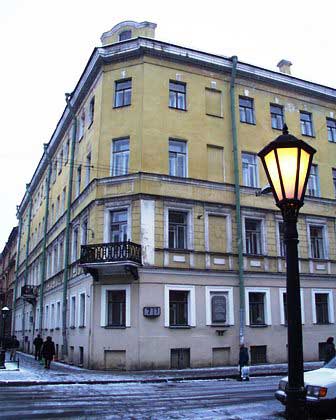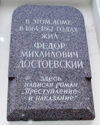 『罪と罰』を彼がここで執筆したという建物がラスコーリニコフの下宿のすぐ近くにある。 (上段左右:2000年12月,中:2017年1月撮影)