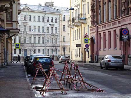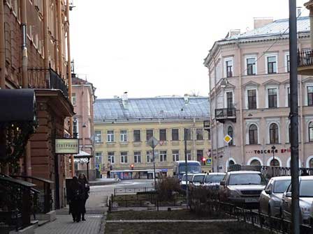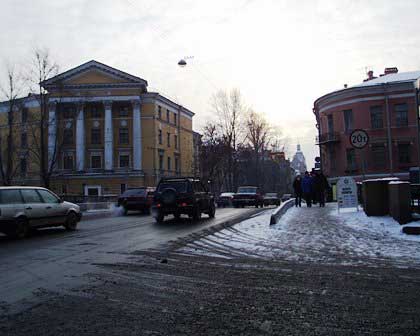 「彼は、急用でもあるような急ぎ足で、V通りを横ぎり、ワシリエフスキー島へ向かった。」 (2000年12月撮影)