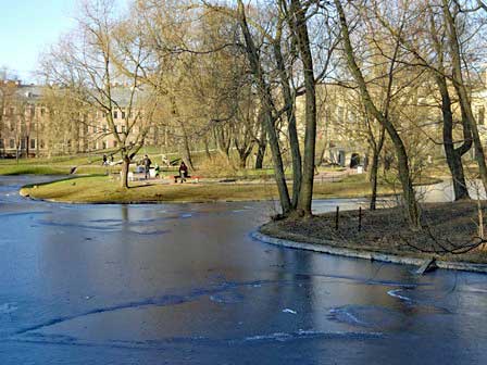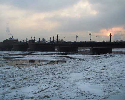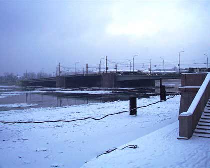「こんなふうにして、彼はワシリエフスキー島を端から端まで横ぎり、小ネワ川の河岸へ出た。橋を渡り、『群島』のほうへ折れて行った。」 (2000年12月撮影)