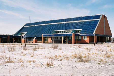青い大屋根で有名だと言われるタクシモ駅の駅舎。この駅から西が電化区間で、これまで列車を引いてきたディーゼル機関車はこの駅で電気機関車にバトンタッチする。 (2001年3月撮影)