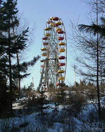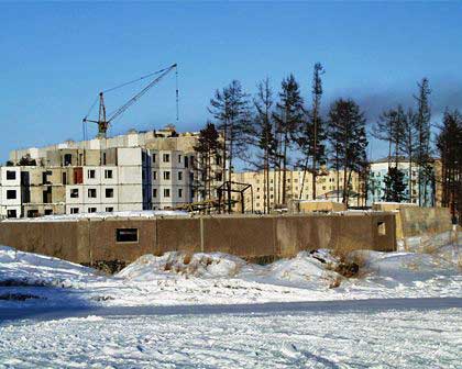 市の創設当時は住宅建設まではとても手が回らなかったのか、バラックのような住宅も多かったという。現在では写真のようなアパートが建てられているが、パネル工法なのが素人には気になる。このあたりでは温泉が湧くのだが、ということは地震地帯だということではないのだろうか。 (2001年3月撮影)