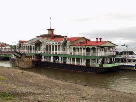 アムール川クルーズの船が出るハバロフスク河港の浮き桟橋。ここと流域の各市町村とを結ぶホバークラフトの路線がたくさんある。 (2002年8月撮影)