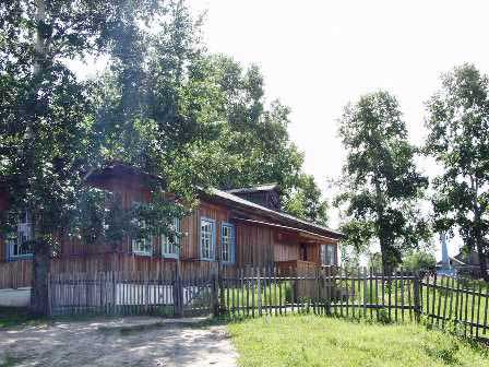 村内の民家の一つ。どこの家もちょっとした広さの庭を持っていて、そこでかりに野菜を作っていたとしても、必ずこうやって花を育てることを忘れない。 (2002年8月撮影)