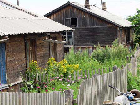 ナナイの人たちが主に住む寒村シカチアリャンの朝の風景。 (2002年8月撮影)