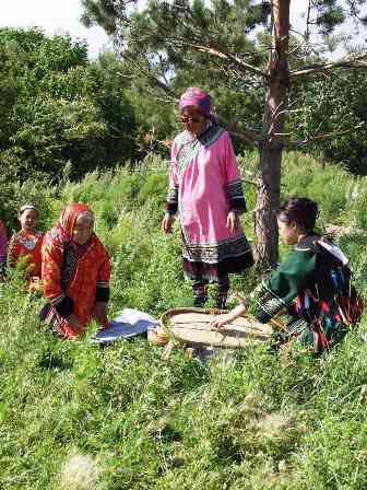 ナナイ人に伝わる宗教的儀式を観光客のために再現して見せてくれているところ。 (2002年8月撮影)