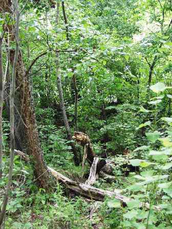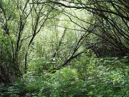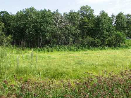 でも、グリーン・ストップの醍醐味は何と言っても自然と戯れること。川で水浴してもよいし、岸で肌を焼いてもいいし、あるいは奥の森に分け入ってもいい。食事をした岸辺のすぐ背後は森になっていたが、それを通りぬけると写真のような原っぱが開けていた。 (2002年8月撮影)