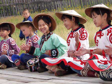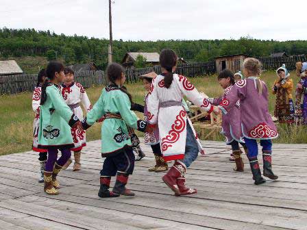 参観者からいちばんの喝采をあびたのは小学生ぐらいの子どもたちの踊り。踊るときも、出番を待っているときも、終わった後も、どの子の表情もほんとうに屈託がなく、見ているだけで我々は命の洗濯をさせてもらった。 (2002年8月撮影)