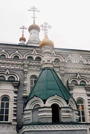 アルハンゲリスクは古くからロシアが持つ数少ない海の玄関口として栄えた。写真は市内で見かけたとある教会の上部だが、同じ北辺でもカムチャッカやサハリンにある教会とは違う歴史の重みのようなものを感じるのは気のせいだろうか。 (1998年8月撮影)