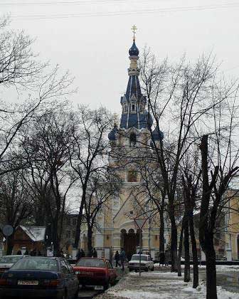 ベラルーシのポーランド国境に近い街ブレスト市内で見かけた正教の教会。 (2000年12月撮影)