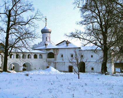 ヴォログダの郊外にある修道院。城壁の内部で撮った写真。 (2000年1月撮影)