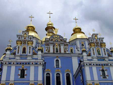 キエフに再建された修道院の建物の上部。 (2003年8月撮影)