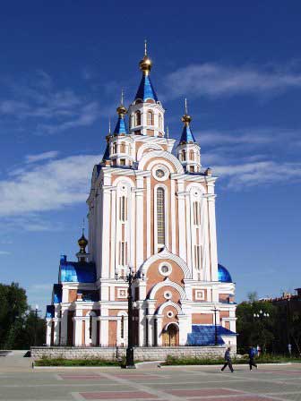 極東の都市、ハバロフスクの広場に再建された教会。 (2002年8月撮影)