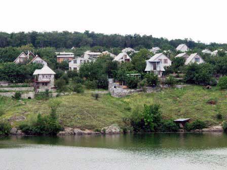 川岸にはこうした住居を数多く見ることができる。ダーチャだろうか。それとも一年を通して日常生活の場にしている住居なのか。 (2003年8月撮影)