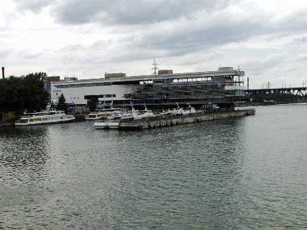 ドニエプロペトロフスクの河港ターミナル・ビル。下船して街も歩いてみたが、閑散としたターミナル・ビルの様子からは想像もできないほどの大都会だった。 (2003年8月撮影)