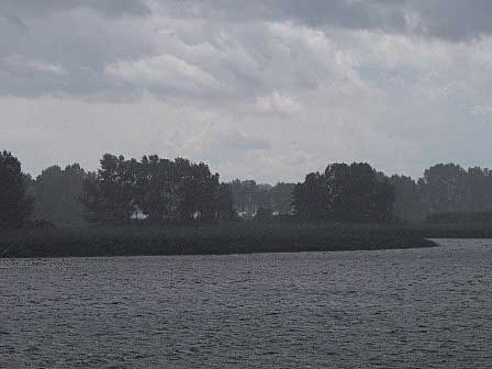 突然降り出した雨で、周囲の景色は墨絵のようになった。 (2003年8月撮影)