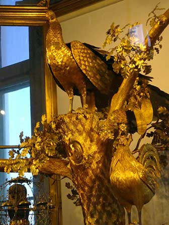 エルミタージュのシンボルとも言われる孔雀のからくり時計。パビリオンの間に置かれているが、普段は時を刻んではいない。 (2020年2月撮影)