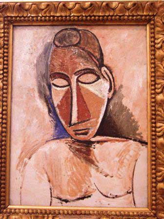 館内での写真撮影が認められていないわけではない。入場の際に撮影のための割増料金を支払い、かつストロボを焚かないのなら撮影は許される。しかし、展示品を撮影するためだけにカメラを持ち込むのはやめたほうがよい。プロが撮影した優れた画集が館内で買えることもあるが、もともと美術館として設計された建物ではないので、採光がよくない。上の2枚のピカソの絵は、私が撮影した際に室内の照明光や外からの光が反射することを免れた数少ないもの。 |
