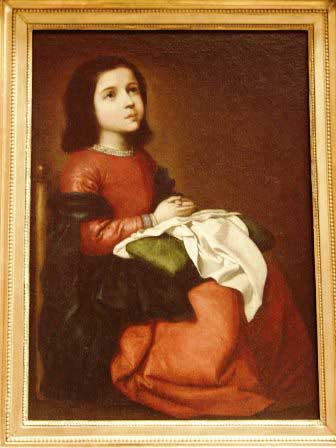 左の写真は「聖母マリアの少女時代」を描いたというフランシスコ・スルバラーンの作品。こちらは、母になるずっと以前のマリアだから当然若い。 (2005年3月撮影)