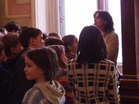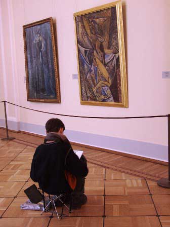 学校がお休みの季節には、館内に子供たちの姿も多く見かける。左上は、ダ・ビンチの聖母像前で説明を聞く子ら。ちょっと飽きてしまってよそ見をしている子もいるけど。上は、美術館の出入り口に近い空きスペースに集まって話を聞いている場面。入館直後に予備的な知識を身につけているのか、それとも退館直前にまとめをしているところか。左はピカソの作品の模写をする少年。いずれにしても、こうやって手軽に本物の作品に触れることができるのは素晴らしいことではないか。 (2005年3月撮影)