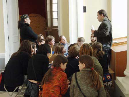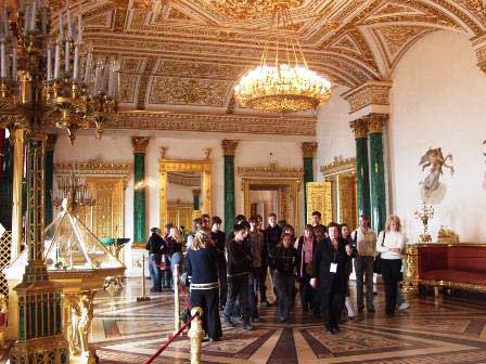 海外からだけでなくもちろんロシアの団体客もある。地方からやてきた人たちの場合と、小中学生が課外授業でやって来る場合が多いようだ。 (2005年3月撮影)