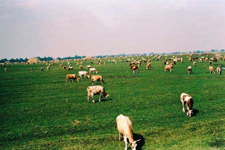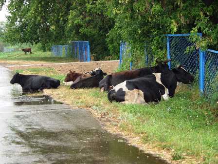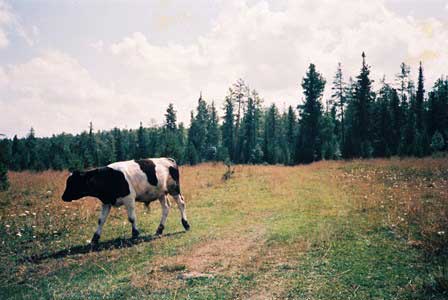 左上はイルクーツク郊外のタイガ地帯で出会った牛、上はウクライナの牧草地に放牧されている牛たち、左はボルガリの村の樹の下で寝そべる牛達。どれもやはり放し飼いだった。 それに対して、下段は繋がれている牛で、どこで飼われていたかというと、バイカル湖畔リストビャンカの聖ニコライ教会の境内。近づいてきた見知らぬ人間に気づいて、ちょっと警戒心を示している。 (左上:1983年8月,右上:1985年8月,中:2007年8月,下:2011年8月撮影)