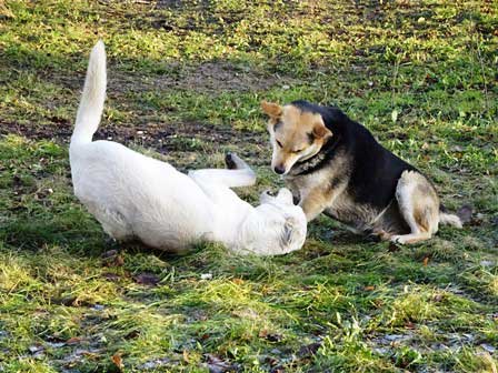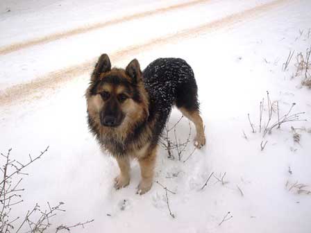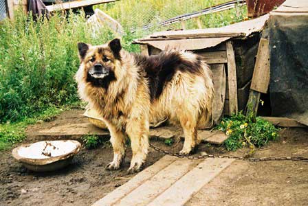 左はカムチャッカのナリチェヴォ自然公園で、下の2枚はエニセイ河河口近くのウスチ・ポルト村で撮影したもの。どちらも飼い犬だが、放し飼いにされているのが特徴。左と中の犬は私たち観光客に少しは関心を持ってくれている目つきだが、右の犬ときたらまったく頓着ない様子だった。 (左:2000年8月,中・右:1999年8月撮影) キーデクシャの村で、一匹の犬が私についてきた。当初は、私も友好的に対応し、こうして写真を撮ってあげていたくらいだ。ところが、こいつ、とんでもない犬で、私にとびかかってきて、爪が衣服を貫いて皮膚まで届くので痛い。コートやズボンが爪で引き裂かれるのではないかと思ったほどだ。さらに、前肢2本でほんとうに抱えるようにして、私の胴や足に抱きついてくる。人に抱き付かれたことだって無いのに、犬に抱き付かれたなんて初めてだ。成田を出る時に見た検疫のポスターを、たまたま覚えていて、それには、ロシアは狂犬病の汚染地帯であること、狂犬病になると致死率が100%近いことが書かれていた。なので、それからは、この犬に噛みつかれないようにと、大乱闘を演じた。背負っていたザックを手に持って楯がわりにし、ついでにそのザックでヤツを殴るとか。そのうち、コイツは、雪を投げられるのを嫌がることがわかったので、「後半戦」は専ら雪の塊で応戦。しかし、執拗な犬で、一旦退散したかに見せかけてまた現れるということを繰返し、「戦闘」は1時間にも及んだ。スズダリに向かって帰る時も、後ろから追ってくるしつこさだったが、幸い、途中の民家に別の犬がいて、どっちが絡んだのか、そこで犬どうしの関係になったために、難を逃れられた。しかし、損害は甚大で、乱闘中にザックの中の飲料水のペットボトルの栓が外れてザックの中はびしょ濡れ。しかも、首から下げていたカメラのレンズ・キャップを紛失。(;_;) 今度ヤツに出会ったら死刑だ!(すみません、気持ちが昂っているので、過激になっています。) (2014年12月撮影) 左は、ペテルブルク市内を散歩していた時に撮った写真。二匹の犬がじゃれあっているのか格闘しているのか知らないが、関心がお互いどうしに向いていたため上のキーデクシャでのようなことにならずに済んだ。しかし、野犬なのか放し飼いなのか知らないが、ロシアの各地にはこうやって自由に往来を歩く犬がわんさといる。 (2017年1月撮影)