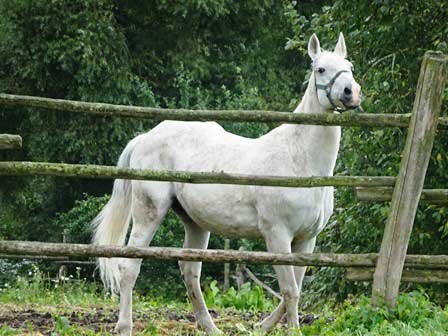 ヤースナヤ・パリャーナの敷地内で飼われていた白馬。 (2017年8月撮影)