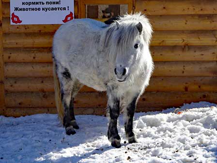 カザン市内の商業施設にいたポニー。なんだか前髪がむやみに長い気がするんだけど。 (2019年3月撮影)