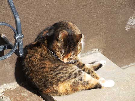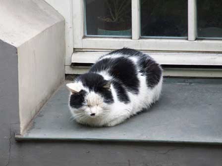 どちらも、リガの旧市街を散策中に見かけた。飼い猫なのか野良猫なのかは不明。二匹とも、知らない外国人が近づいても、警戒するどころか、目を開けることさえしない横着者だった。 (2014年3月撮影)