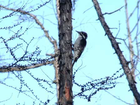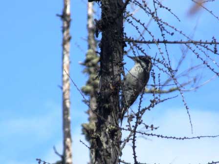 レンスキー・ストールビィ自然公園の展望台に登ったとき、一緒に歩いていた人が「あそこにきつつきが...」と教えてくれた。大きな音をたてながら、無心に木の幹をつついていた。 (2017年9月撮影)
