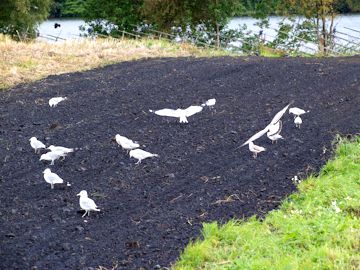 鴎というのは魚を餌にしているものとばかり思っていたが、キジ島では、畑に舞い降りて落ち穂拾いをしている鴎を見た。 (2009年8月撮影)