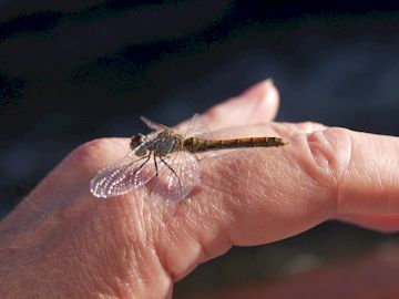 この写真がどうしてロシアと関係あるのかと言われそうだが、ヴォルガの船旅をしていた時、デッキに出ていた船客の手に飛んできたトンボがとまって、「写真を撮って」と言われて撮ったもの。普通、そういう時は手の持ち主の顔も写すものだと思うが、その時はそんなことに気が回らなかった。 (2009年8月撮影)