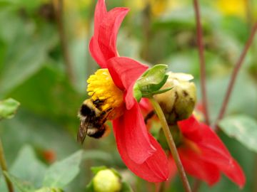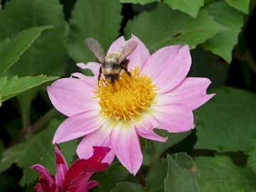 もうこのサイトのあちこちに同じことを書いたが、ロシアの街々はどこも市内いたる所で花壇がとてもよく整備されている。その花壇の花で蜜を集める蜂。2枚の写真は同じ場所で撮ったものではなく、ユジノサハリンスク市内の全く別の場所で撮影した。寒さの季節が目の前に迫っていてとにかく集められるだけの蜜を集めておかなくてはならないからなのか、カメラを近づけても気にする様子もなく仕事に専念していた。 (2006年8月撮影)
