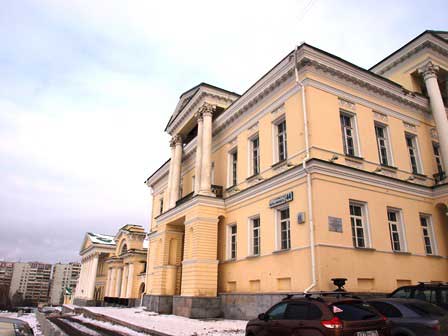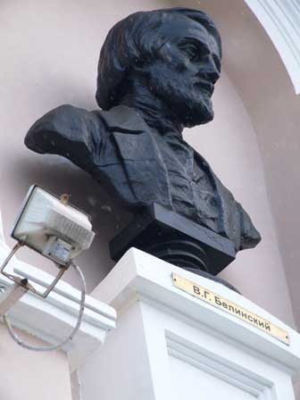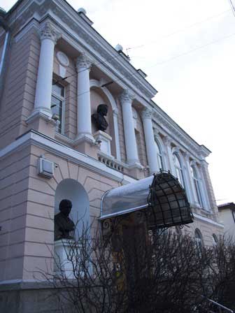 子ども達や若い読者のための図書館。入口の上にV.ベリンスキーの像があった。でも、ベリンスキー名称州立図書館とは別の施設。 (2018年2月撮影)
