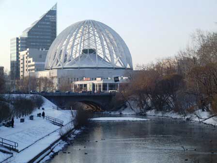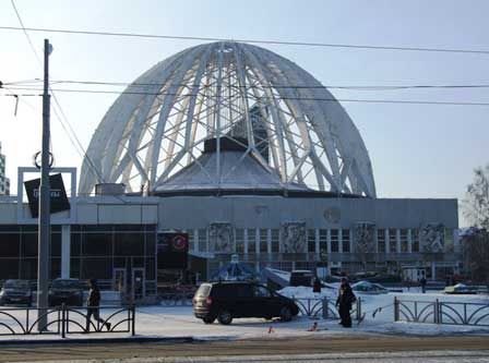 サーカスの常設小屋。イセチ川の池の畔に建つ。透かしのドームが特徴的な建物。 (2018年2月撮影)