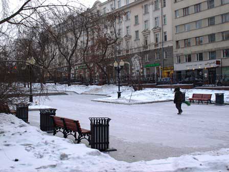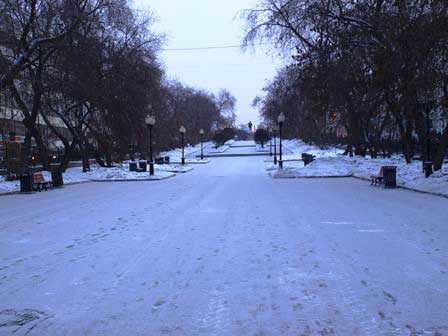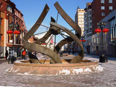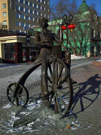 別名「ウラルのアルバート通り」と呼ばれるとか。通りのあちこちに面白いブロンズ像が立っているばかりか、街路灯のデザインもなんだかロシアらしくない感じがする。 (2018年2月撮影)