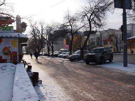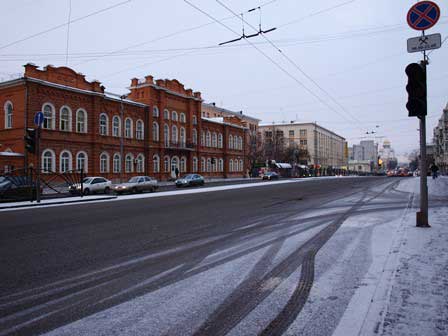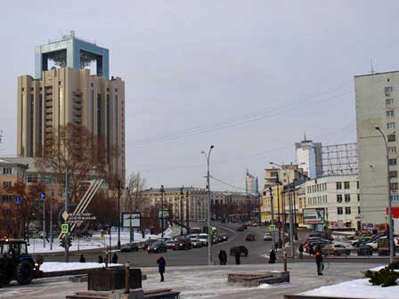 スベルドロフスク州の州都エカテリンブルクの街角の風景。日中の気温は、-5〜-10℃くらいだった。 (2018年2月撮影)