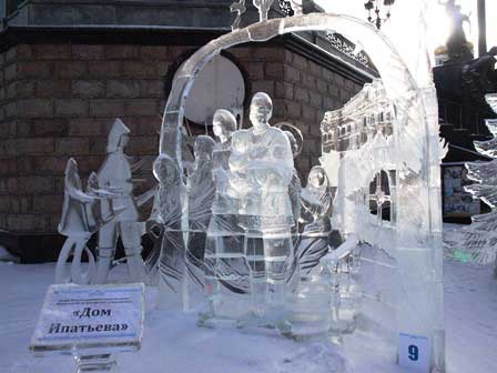 ロマノフ王朝最後の皇帝ニコライII世の一家が監禁され、最後には銃殺された場所とされる「イパチェフの家」跡に建てられた教会。下段中央の写真は、その傍らに建設された一家に関する博物館。私が訪ねた時、氷の彫刻展のようなものが屋外で催されていた。 (2018年2月撮影)