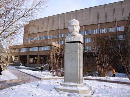 M.ゴーリキー名称ウラル国立大学。前にある銅像は、もちろんゴーリキー。 (2018年2月撮影)