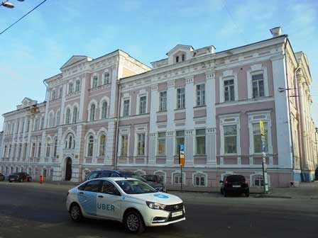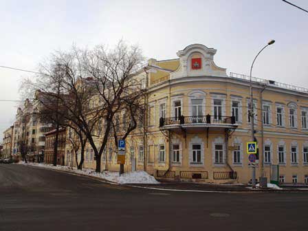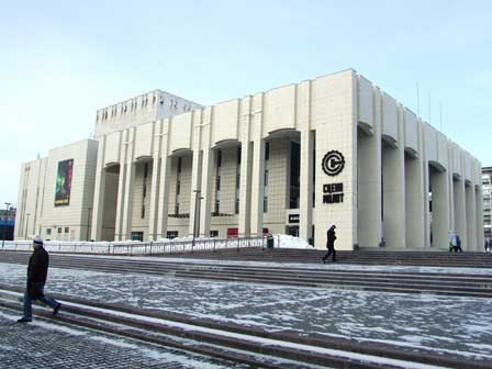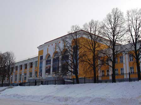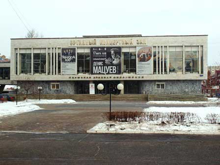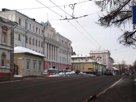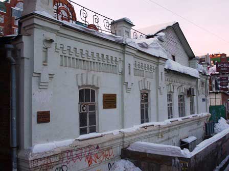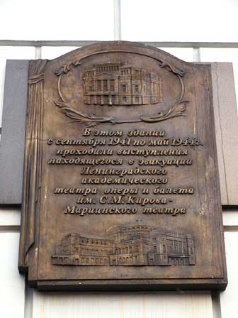 日本でもよく知られている「ペルミ・バレエ」の本拠地。正面脇の銘板には、さきの大戦中のレニングラード封鎖のおりに、キーロフ劇場(現在のマリインスキー劇場)がここに疎開していたことが書かれていた。 (2018年2月撮影)