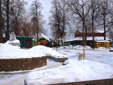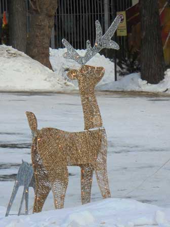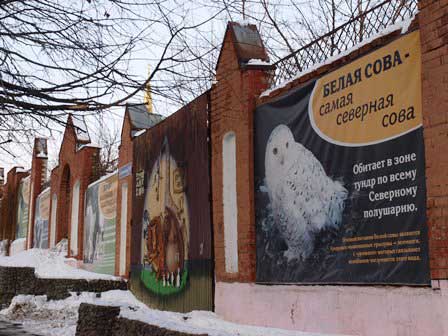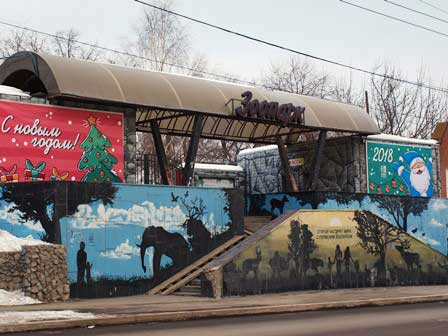 気づいたのは、動物園の塀の外側(道路側)に、代表的な動物について解説するポスターをびっしりと貼りだしていること。それにしても、冬なので、冬眠している動物も多いのか、園内は閑散としていた。そして、その申し訳にか、動物の形をした電飾が立っていたのは、モスクワ動物園と同じ。 (2018年2月撮影)