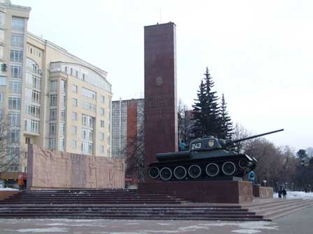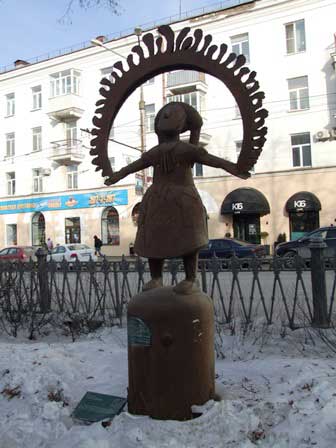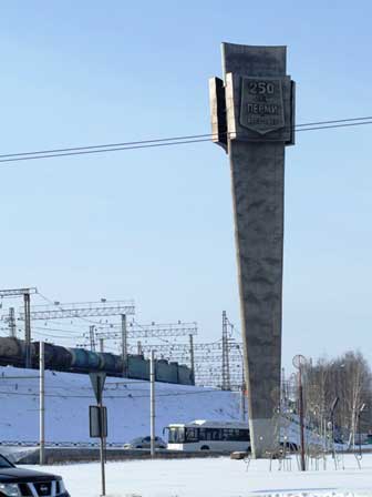 ペルミの町が創建されて250年を記念するモニュメント。ペルミII駅の近くに建てられている。つまり、背後を走っている線路は、シベリア鉄道。 (2018年2月撮影)前のページへ 次のページへ 目次へ戻る