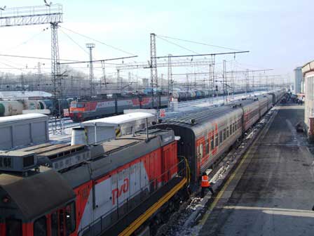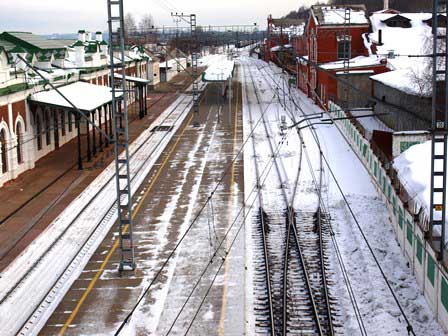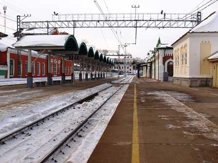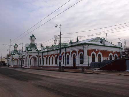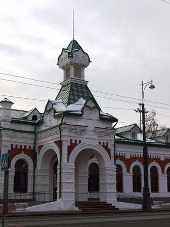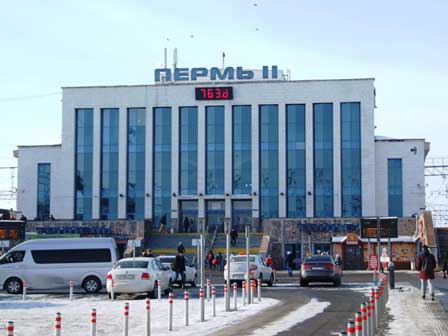 「ペルミ」という名前の鉄道駅が市内には二つある。上の写真は「ペルミII」駅。シベリア鉄道のターミナル駅である。他方、下の写真は「ペルミI」駅。河港の真向かいにあり、水路と陸路をつなぐ要衝であったことが容易に想像できる。しかし、シベリア鉄道本線上には無いため、今では鄙びたローカル駅の風情で、日に十数本の電車が停まるだけになってしまった。しかし、写真を見ておわかりの通り、駅舎はI駅のほうが断然風格がある。 (2018年2月撮影)