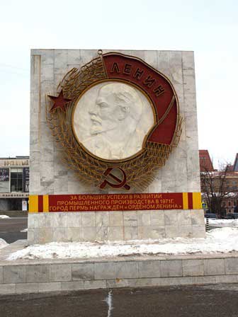 その広場の並び、同じメインストリートで見たレーニン勲章の碑。かつて市として受章したということだろう。 (2018年2月撮影)