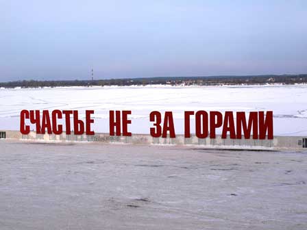 その船着き場にあったスローガンでもないし、オブジェとも言いにくいし、まして注意書きではないだろうし、いったい何? でも、ネットでペルミの名所案内を検索すると、これも出てくる。何なのだろう。しかも、書かれているロシア語の意味が私にはよくわからず、小学生だった頃に「山のあなたの空遠く、幸い住むと人の言う.....」で始まる詩を習った記憶があるが、もしかするとそれとは正反対の意味のような気もするし.....。 (2018年2月撮影)